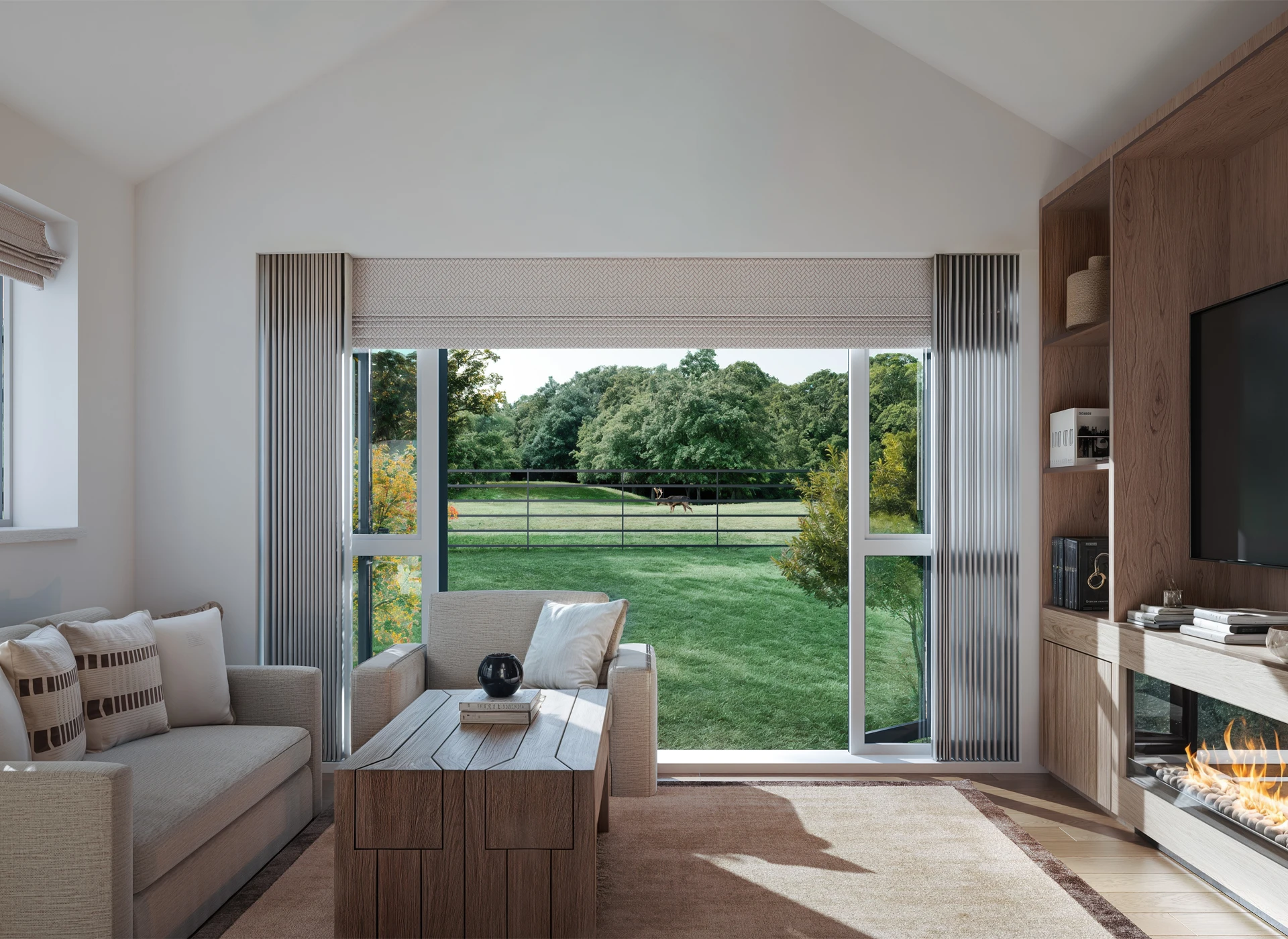 Expansive glazed doors, large windows, and vaulted ceiling, roof light design features (where applicable), fill these homes with natural light, seamlessly connecting the interiors to the picturesque villages and landscapes beyond.